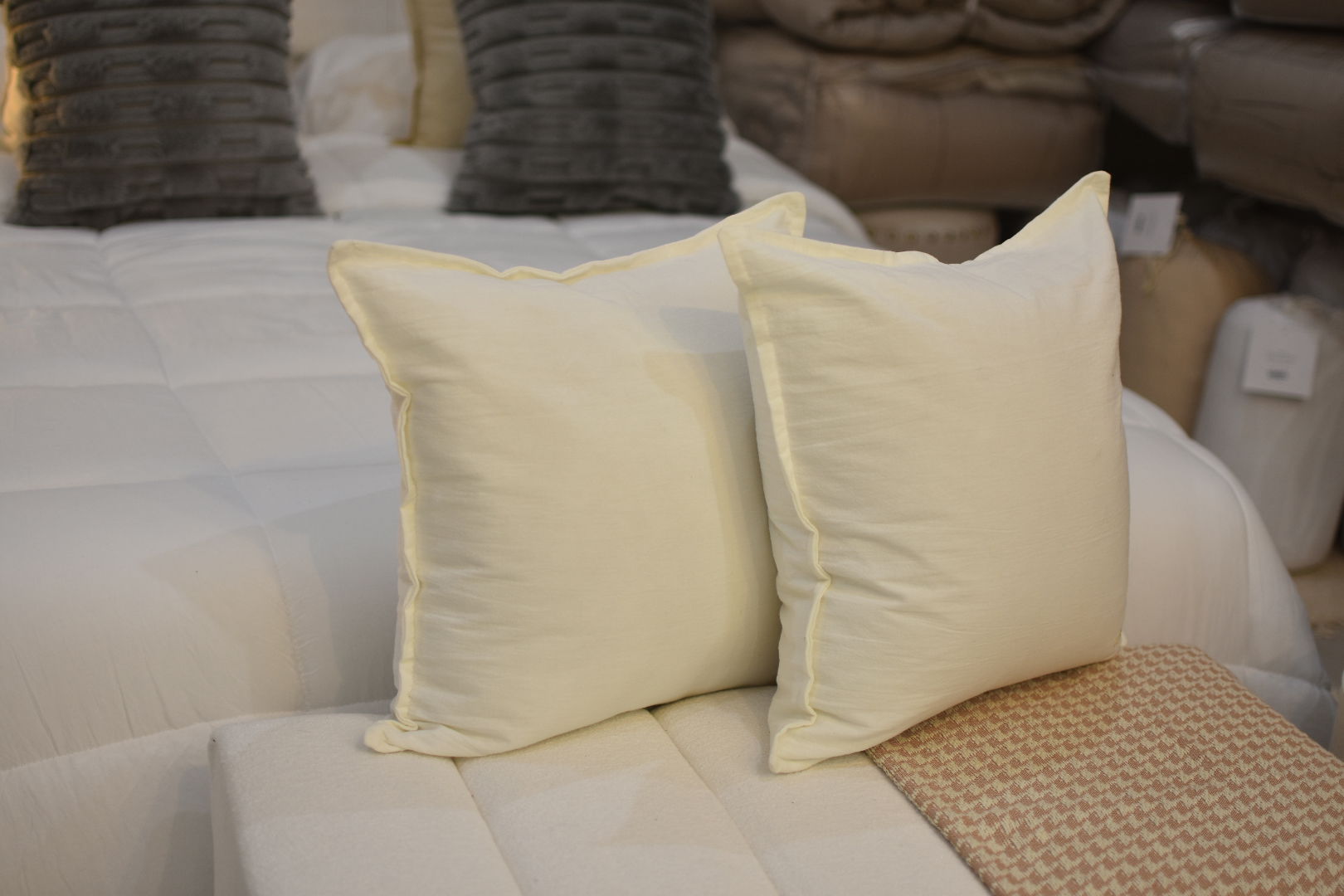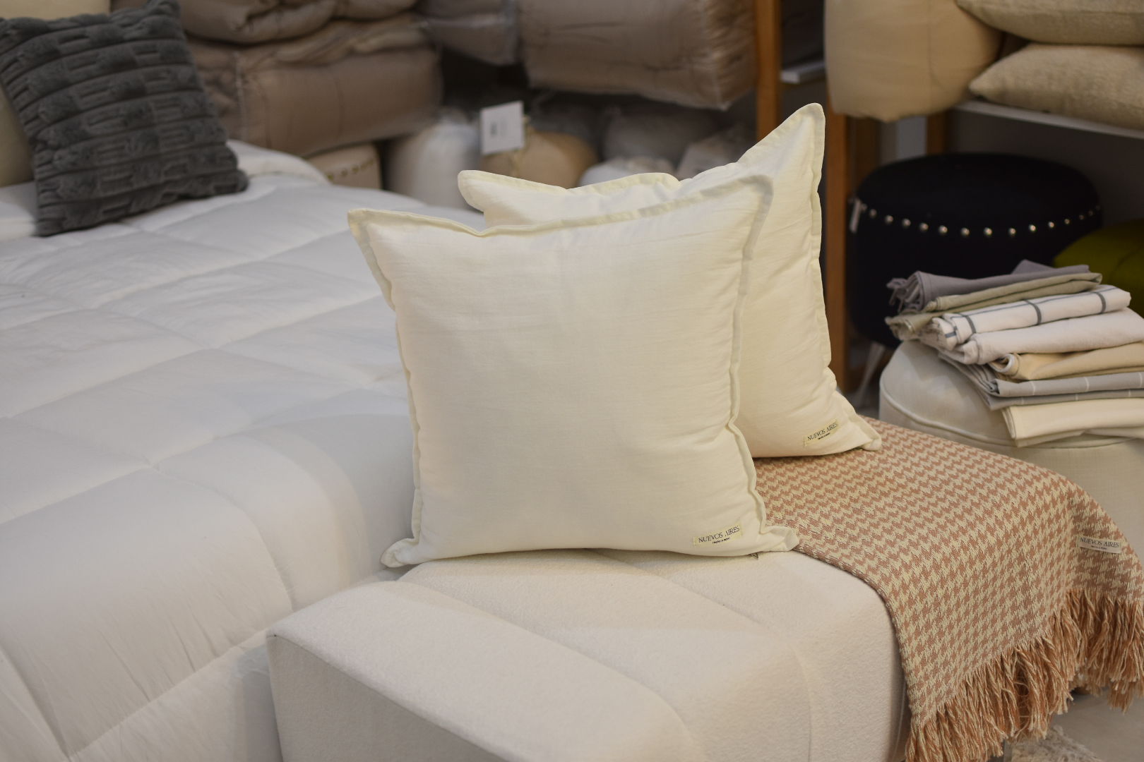 Almohadón confeccionado en Tussor 100% algodón, suave y resistente, ideal para dar un toque cálido y natural a cualquier ambiente.