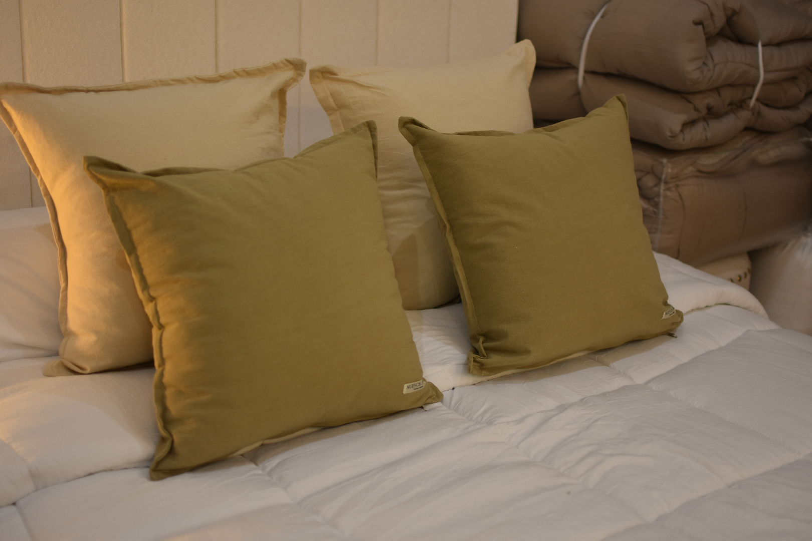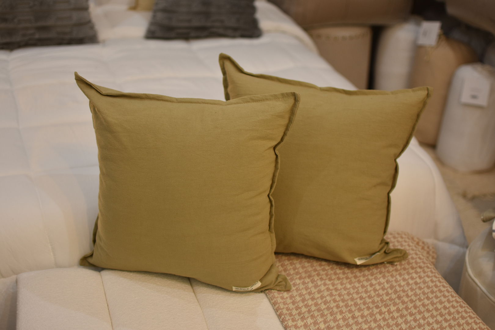 Almohadón confeccionado en Tussor 100% algodón, suave y resistente, ideal para dar un toque cálido y natural a cualquier ambiente.